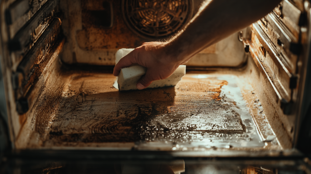 Breaking down baked-on grease inside ovens