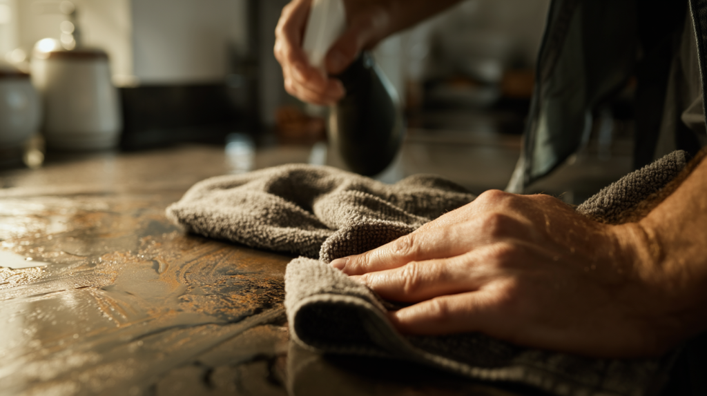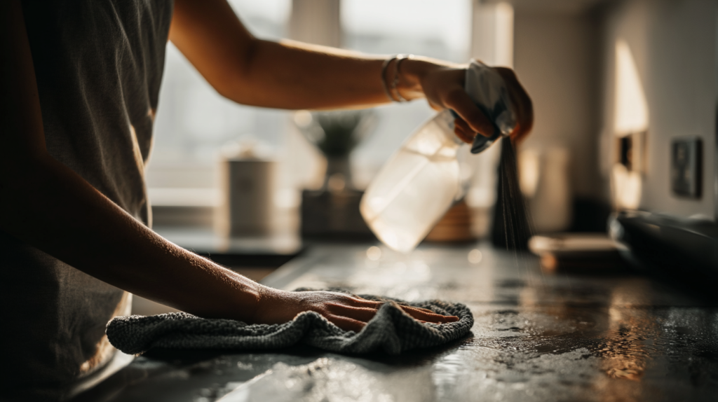 Consistent light cleaning is one of the most effective ways to prevent grease from building up in the first place. Wiping down worktops, cupboard doors, and cooking areas after use removes fresh oil particles before they have time to settle. This simple habit reduces the need for intensive cleaning sessions and keeps surfaces looking fresher for longer.